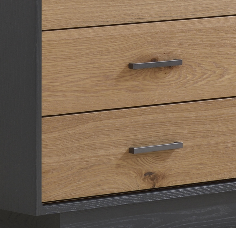 # 1 in Safety – The Como Naturale collection draws inspiration from the Scandinavian style, combining a natural simplicity, minimalism and functionality. A two-tone finish made of Ash wood and Materic Natural Oak wood in White/Rustic Oak to convey a truly natural look and a new color combination of Graphite/Rustic Oak in darker, more elegant colors. The Graphite color contour frame and drawer handles offer a beautiful balance of the dark and natural wood for a richer more dramatic color contrast!