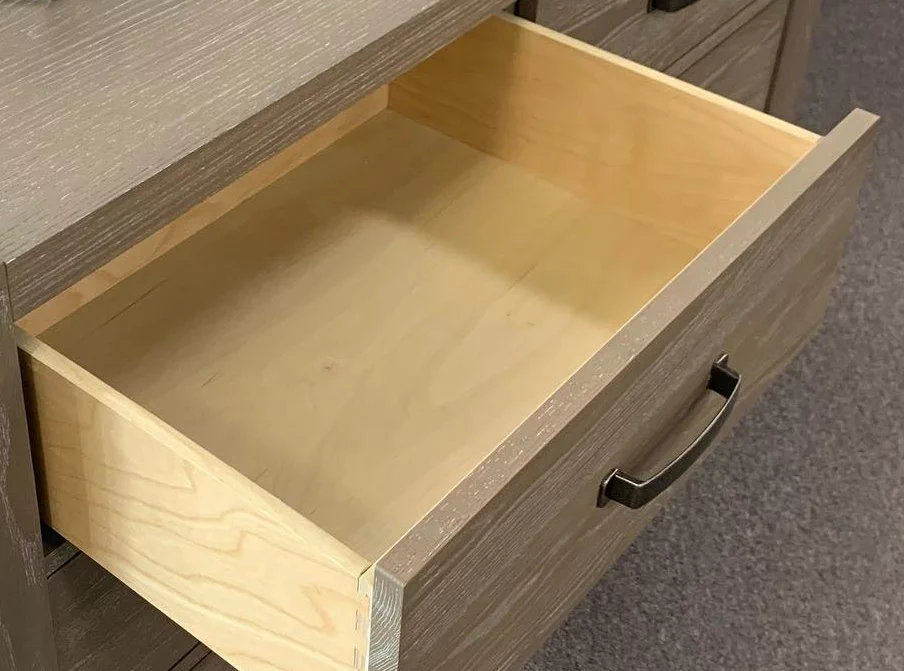 All drawers are joined by English Dovetail connections which prevents the drawer front from separating from the drawer box and providing longevity & increased strength. Our drawer boxes carry a LIFETIME WARRANTY.